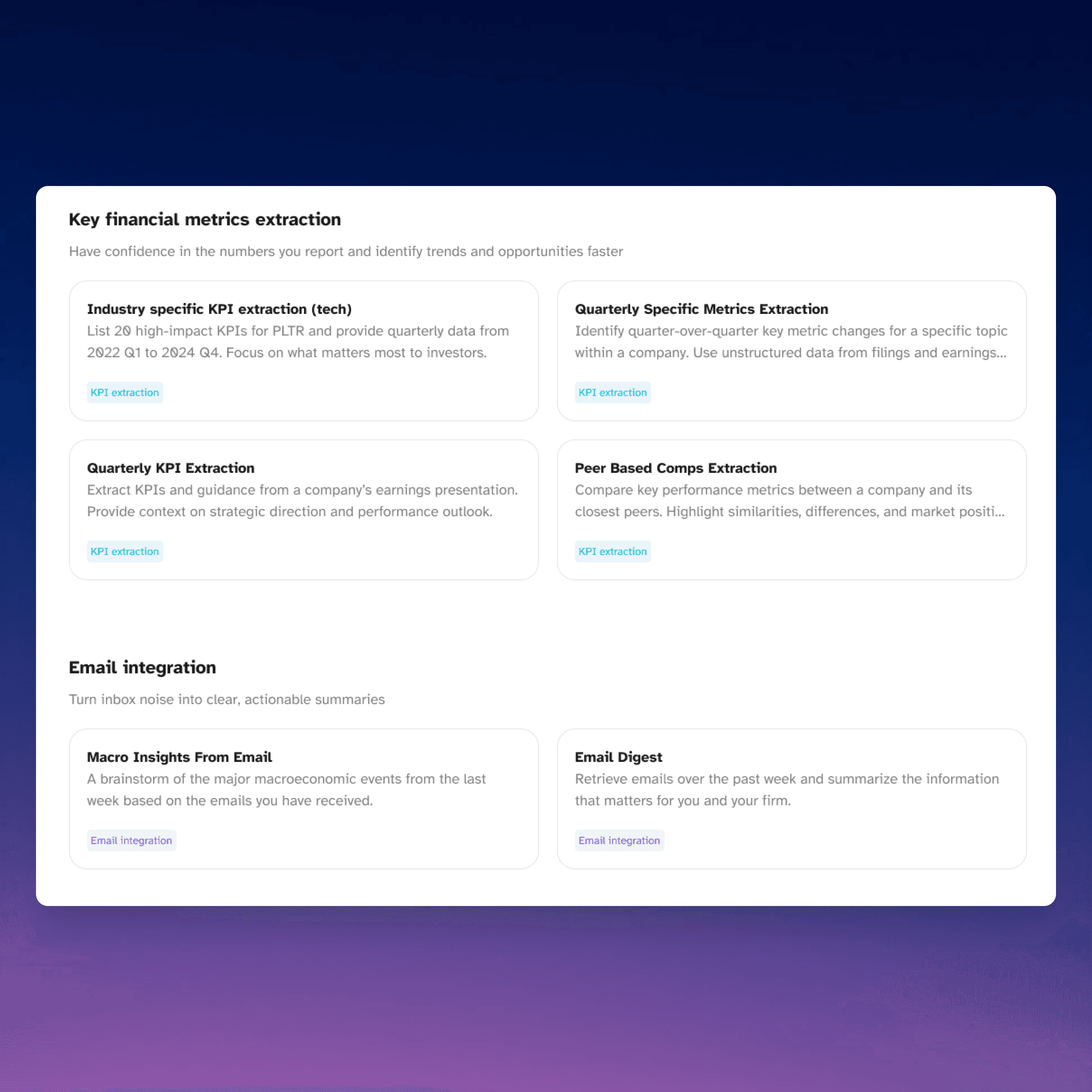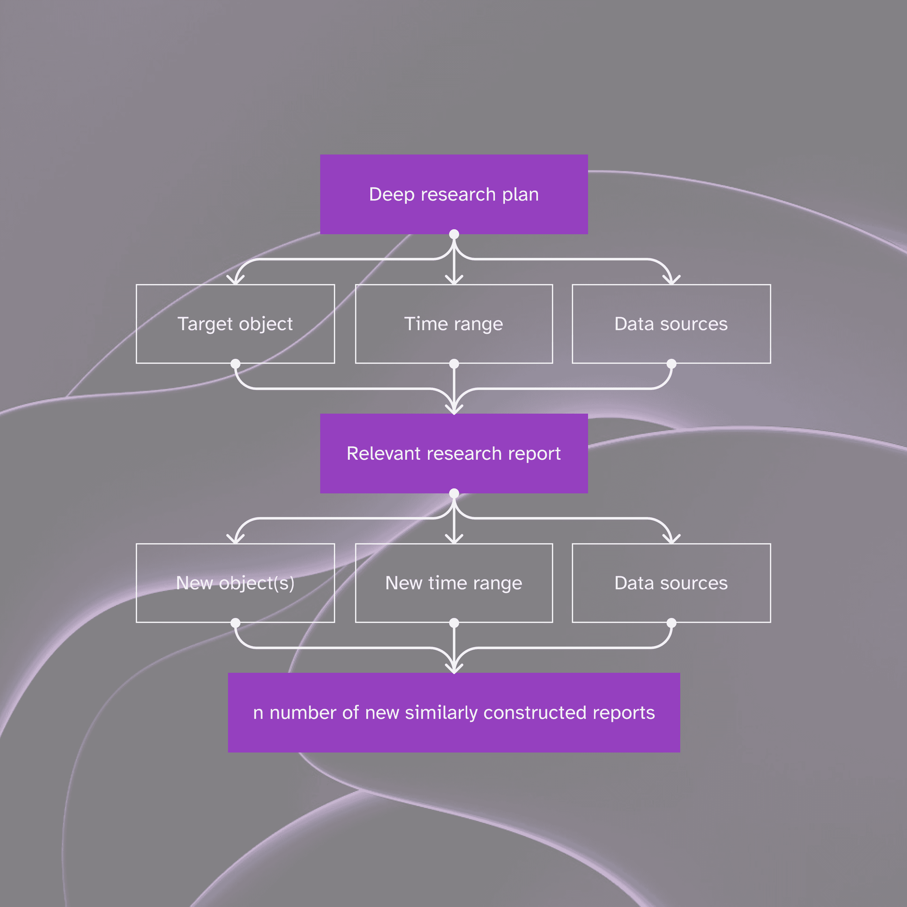 This is where the fun begins. The object that principally produces a report that a user resonates with is the deep research plan. Once a user has this deep research plan set in place whether it was created by them through our chat interface or surfaced through the discover feature, they wanted to scale it across any number of objects that would normally take an immense amount of time to produce.